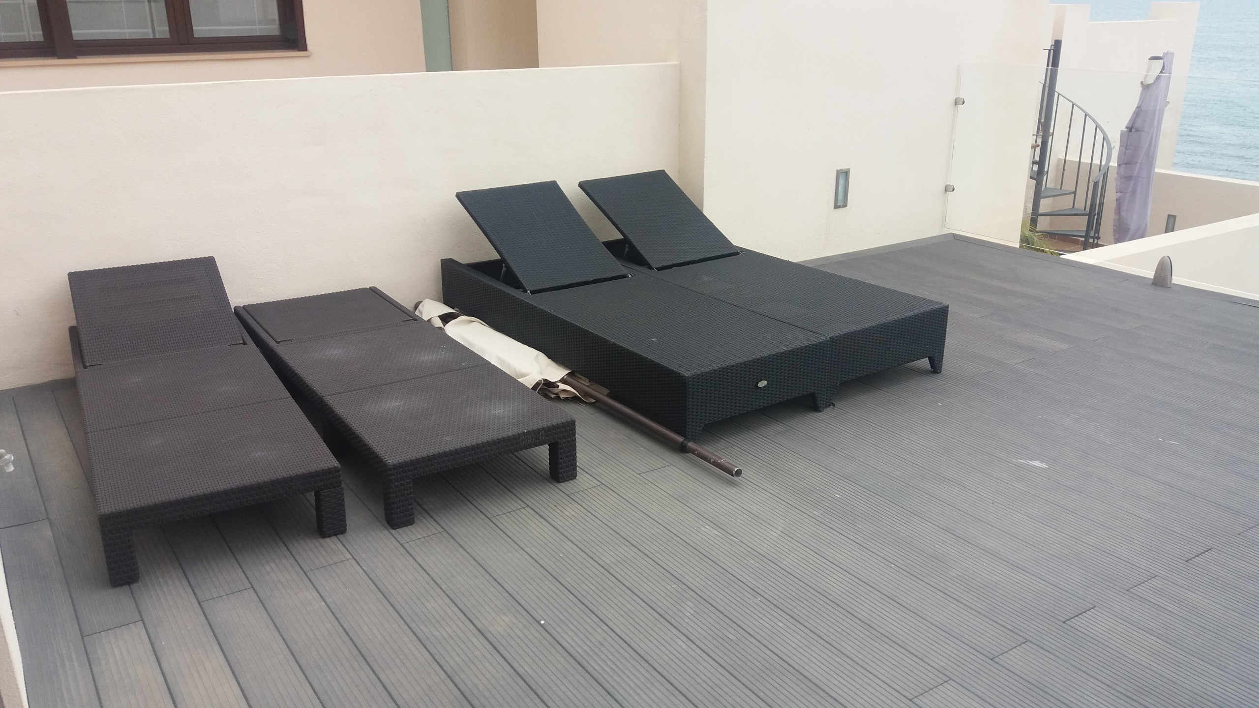 Die Treppe auf der Terrasse führt Sie zur Dachterrasse mit einer großartigen Lounge-Ecke und 4 Sonnenliegen zum Sonnenbaden. Beachten Sie bitte, dass es auf der oberen Terrasse etwas Lärm von der nahegelegenen Hauptstraße geben kann.