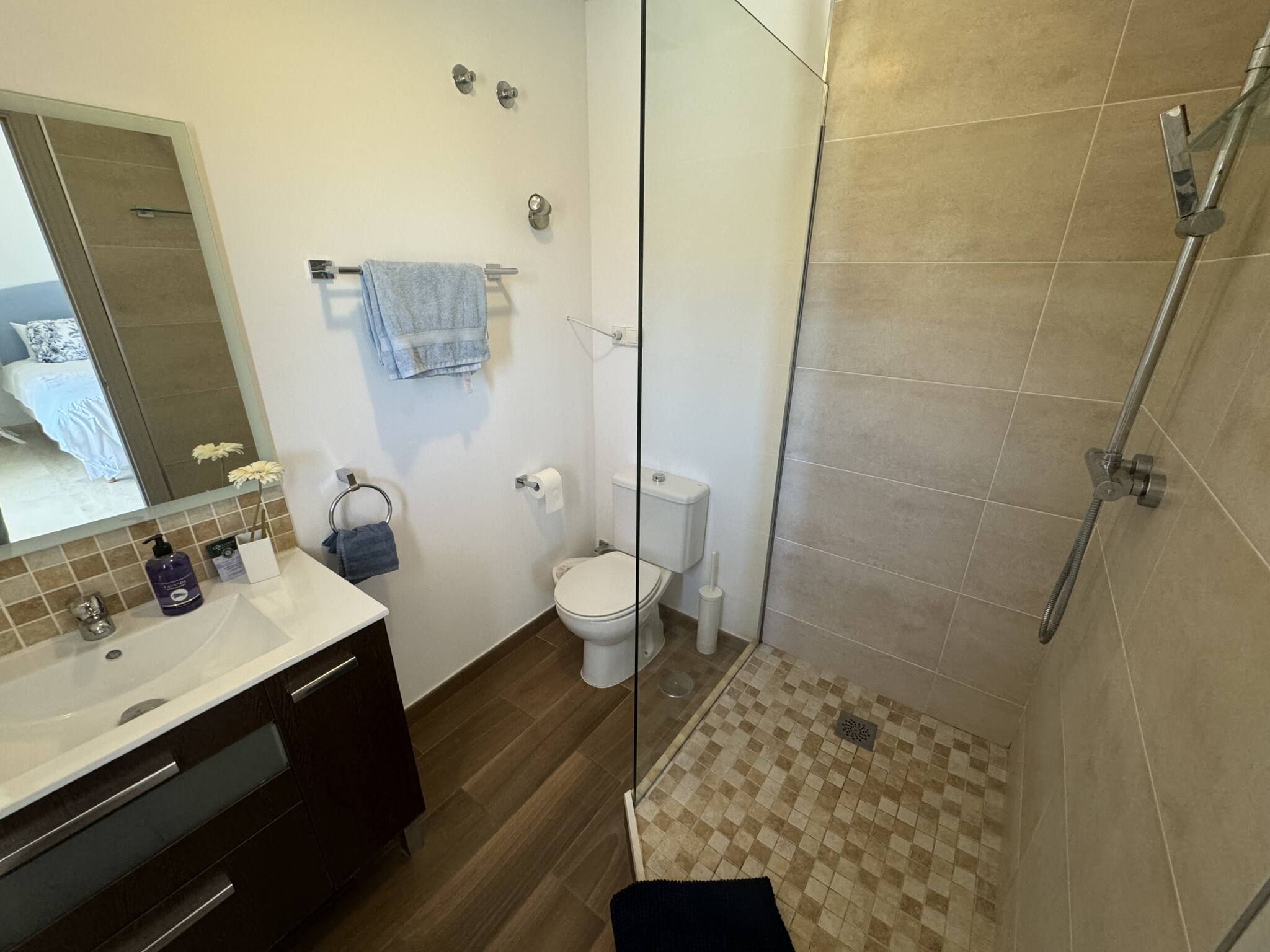 Im Erdgeschoss befindet sich ein Schlafzimmer mit einem Badezimmer. Das Hauptschlafzimmer mit eigenem Bad sowie zwei weitere Schlafzimmer, die sich ein Badezimmer teilen, befinden sich im ersten Stock. Alle Schlafzimmer haben private Terrassen.