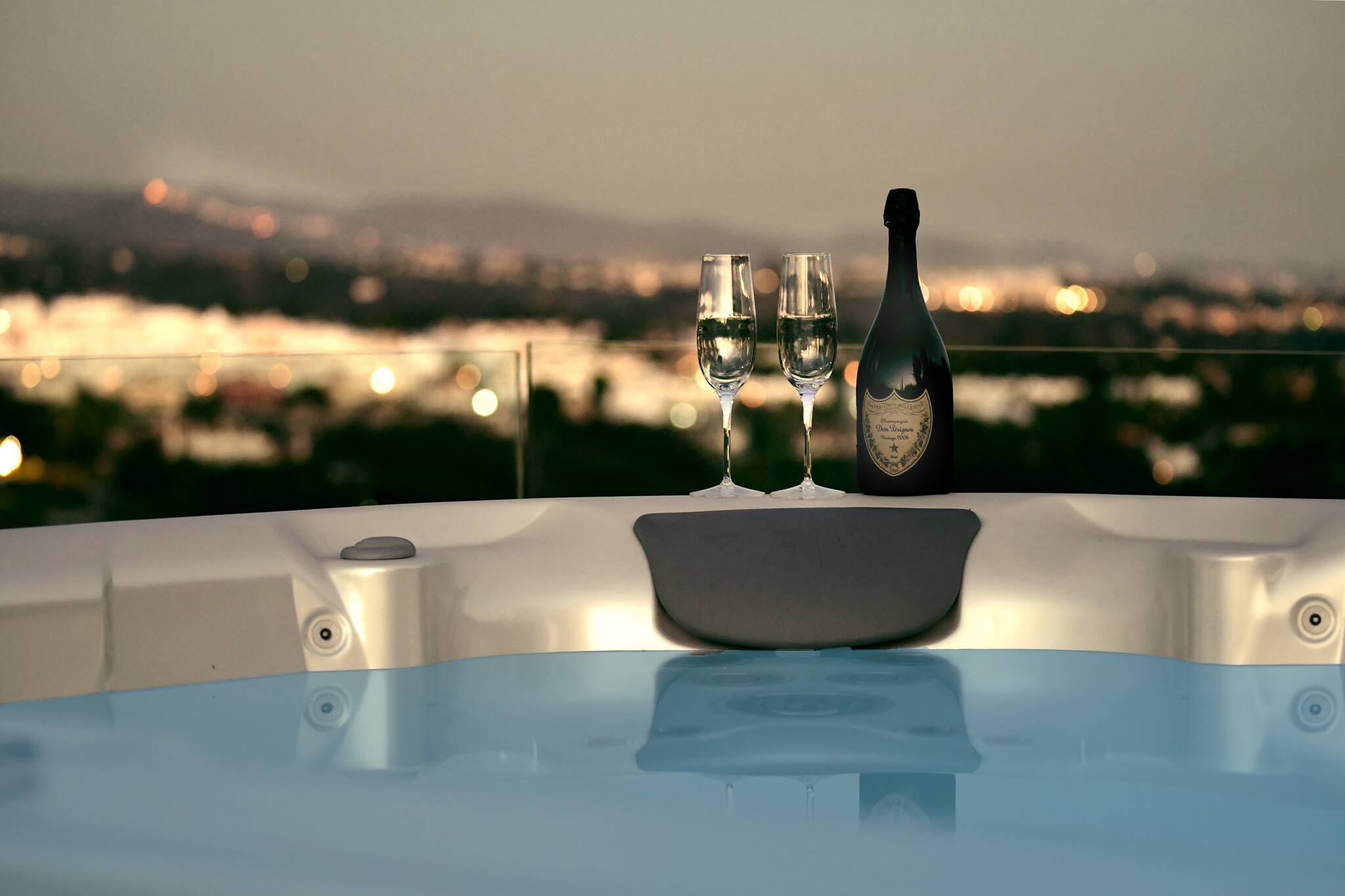 Auf der oberen Terrasse befindet sich ein spektakulärer Whirlpool. Der wunderschöne private Pool kann auf Anfrage beheizt werden* und bietet eine fantastische Chill-out-Zone mit sehr komfortablen Möbeln.