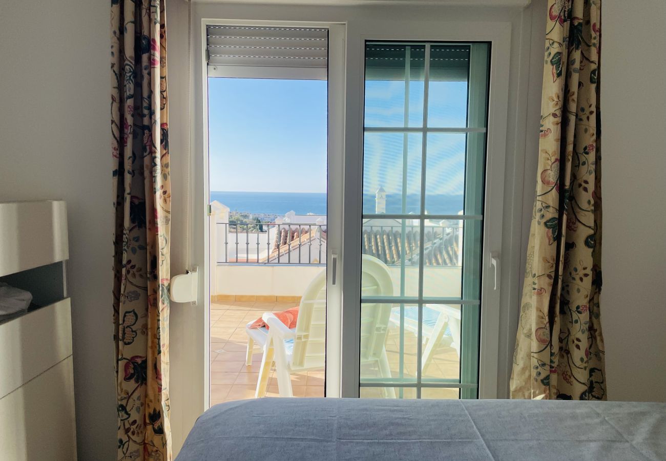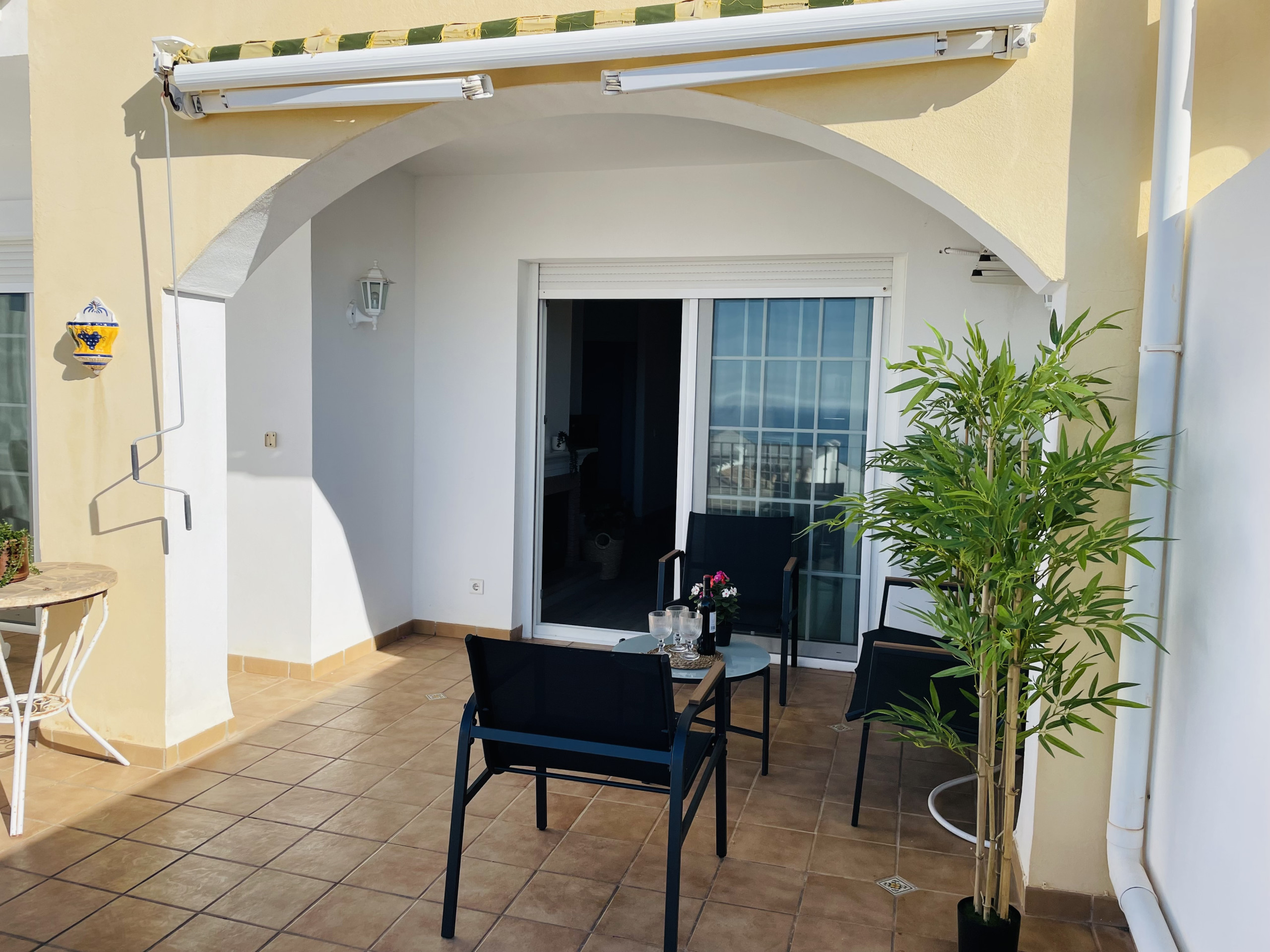 La propiedad consta de un acogedor recibidor, 3 dormitorios, 2 baños, una cocina americana completamente amueblada, y un luminoso salón-comedor con acceso a una amplia terraza soleada que ofrece vistas al mar, a las montañas y al pueblo de Nerja. Es una terraza perfecta para disfrutar durante los 365 días del año.