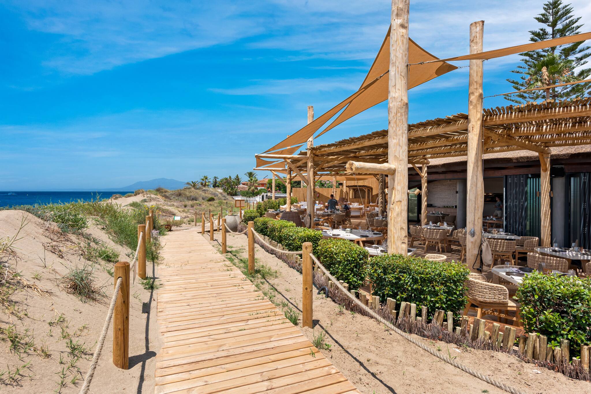 Puedes llegar al centro de Marbella en 10 minutos, al aeropuerto de Málaga en 30 minutos y a Puerto Banús en 15 minutos. Hay muchas playas de arena cercanas. La playa más cercana está a menos de 5 minutos en coche y alberga famosos beach clubs como Los Monteros La Cabane, Nosso, Luuma y el reconocido Trocadero Arena Beach Club. El Royal Tennis Club Marbella también está a solo 5 minutos en coche y ofrece tenis, pádel y gimnasio.