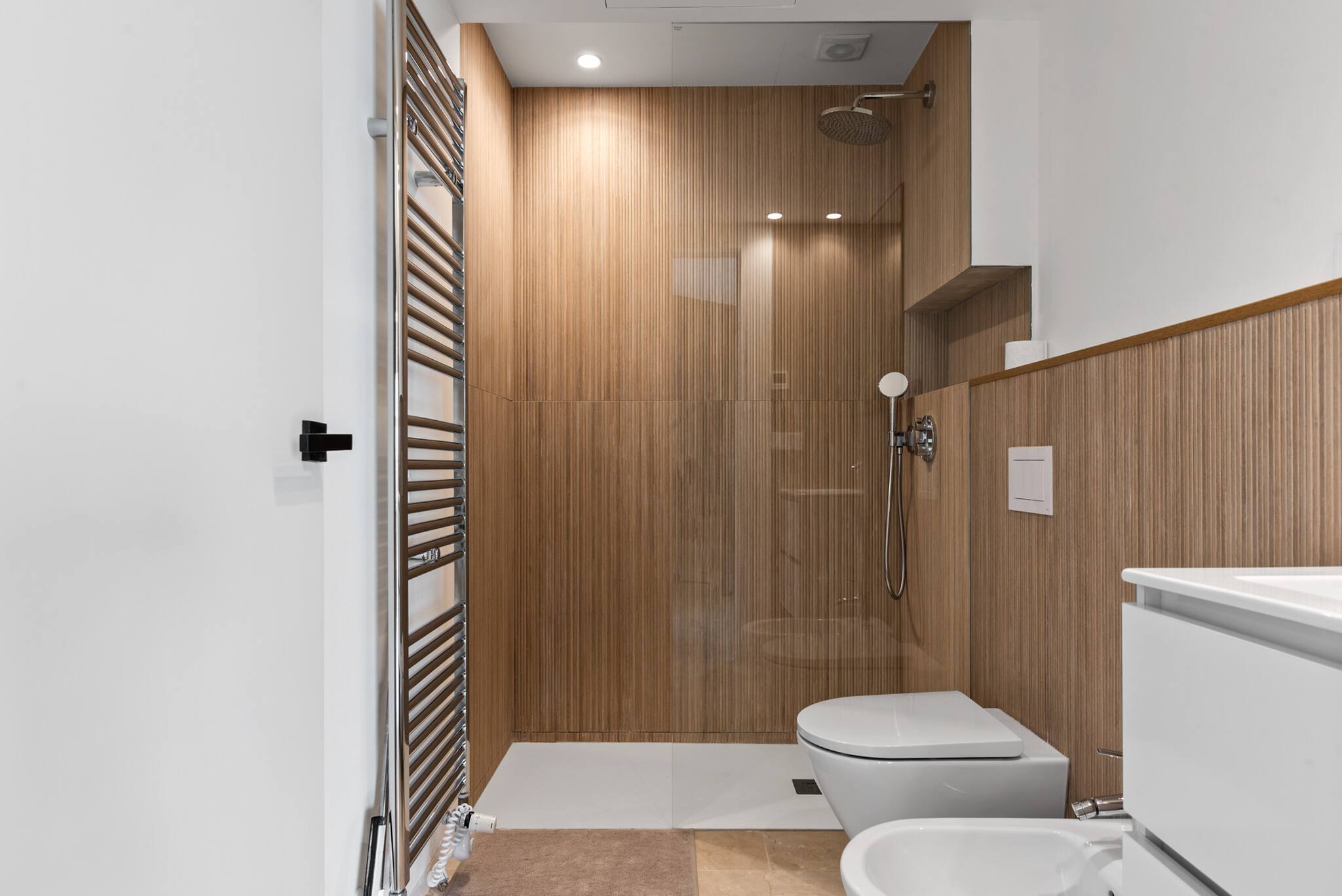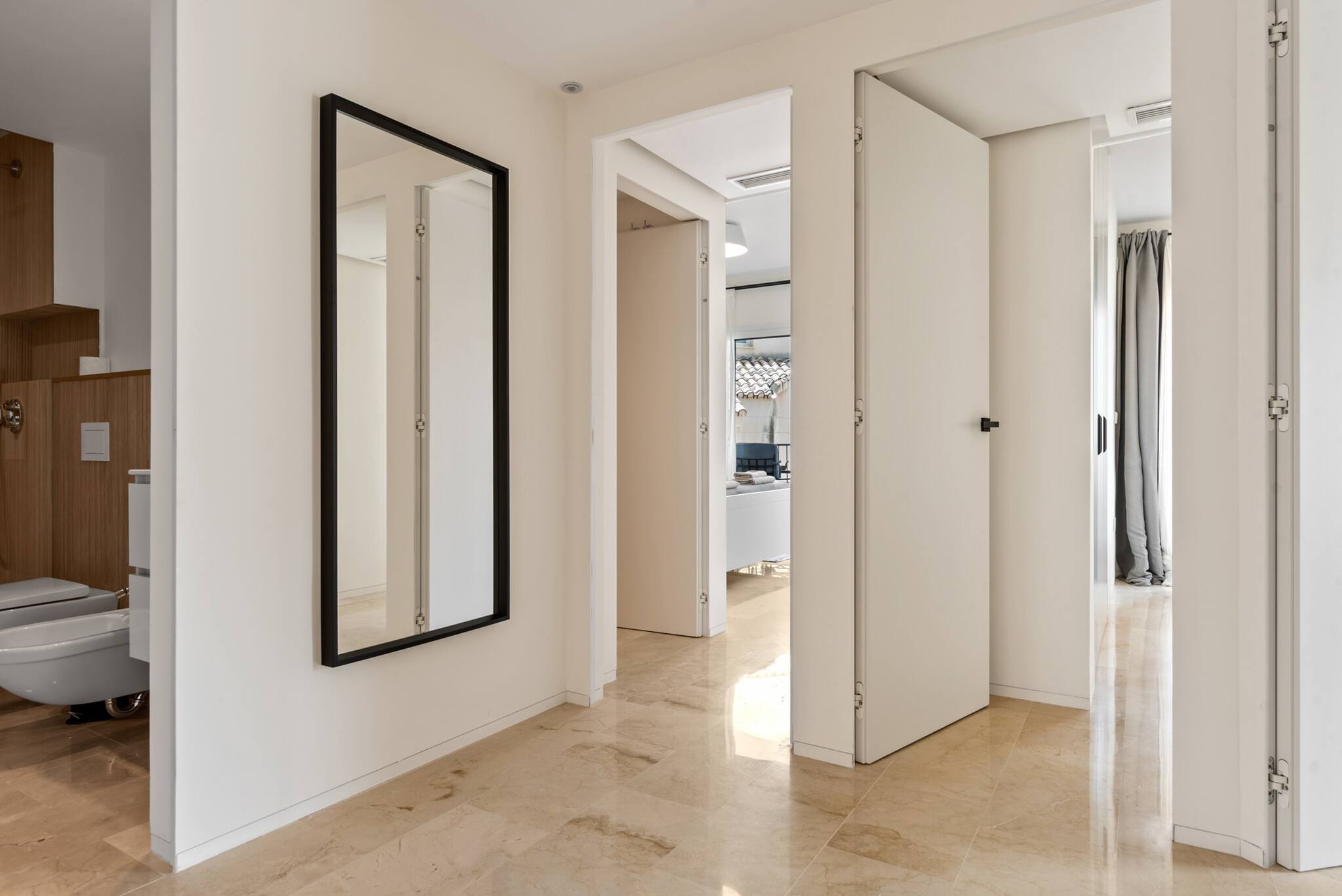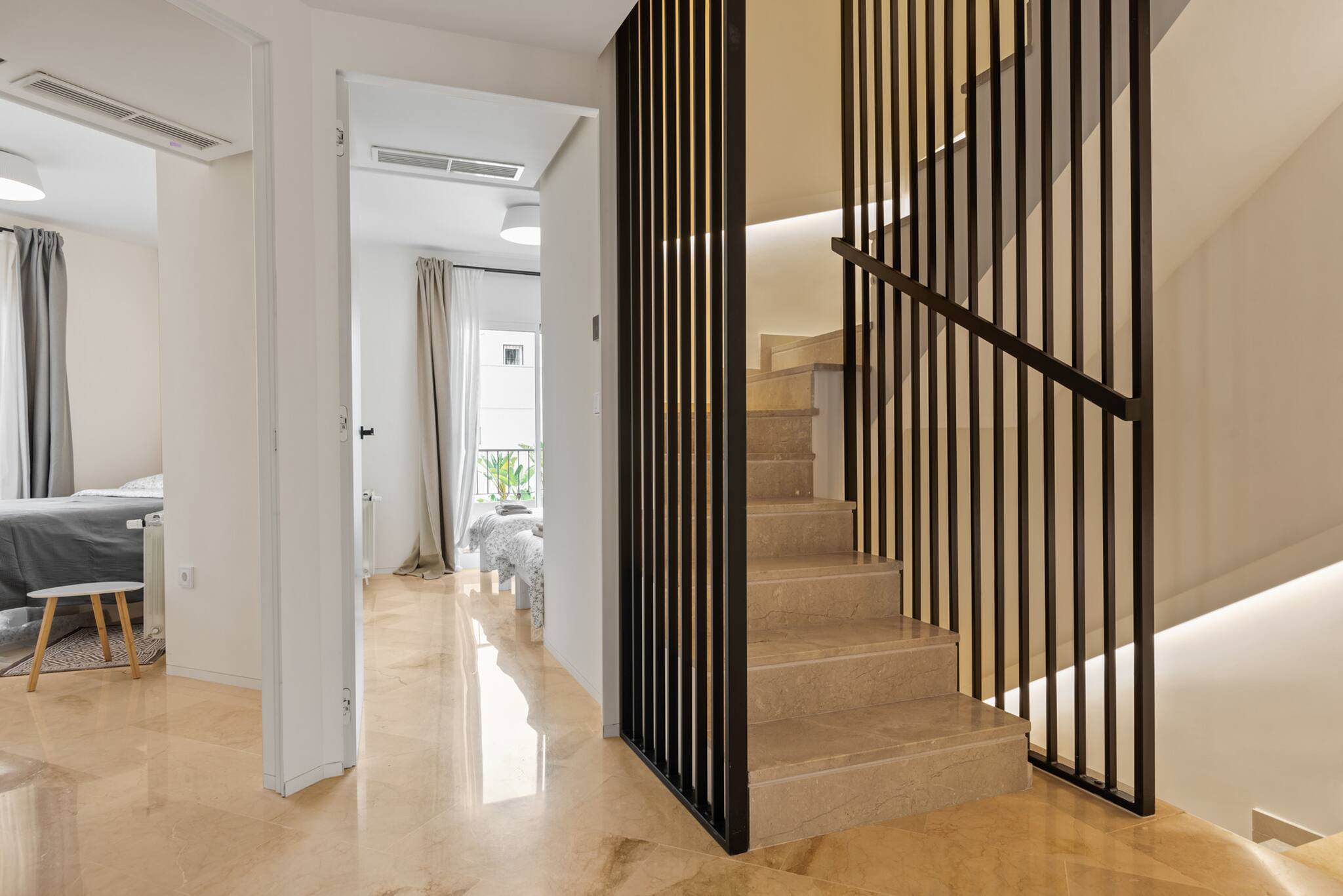 En la primera planta encontrarás tres dormitorios más, cada uno con un amplio balcón y vistas espectaculares. El dormitorio principal cuenta con baño en suite con ducha y bañera, mientras que los otros dos dormitorios dobles comparten un baño.
