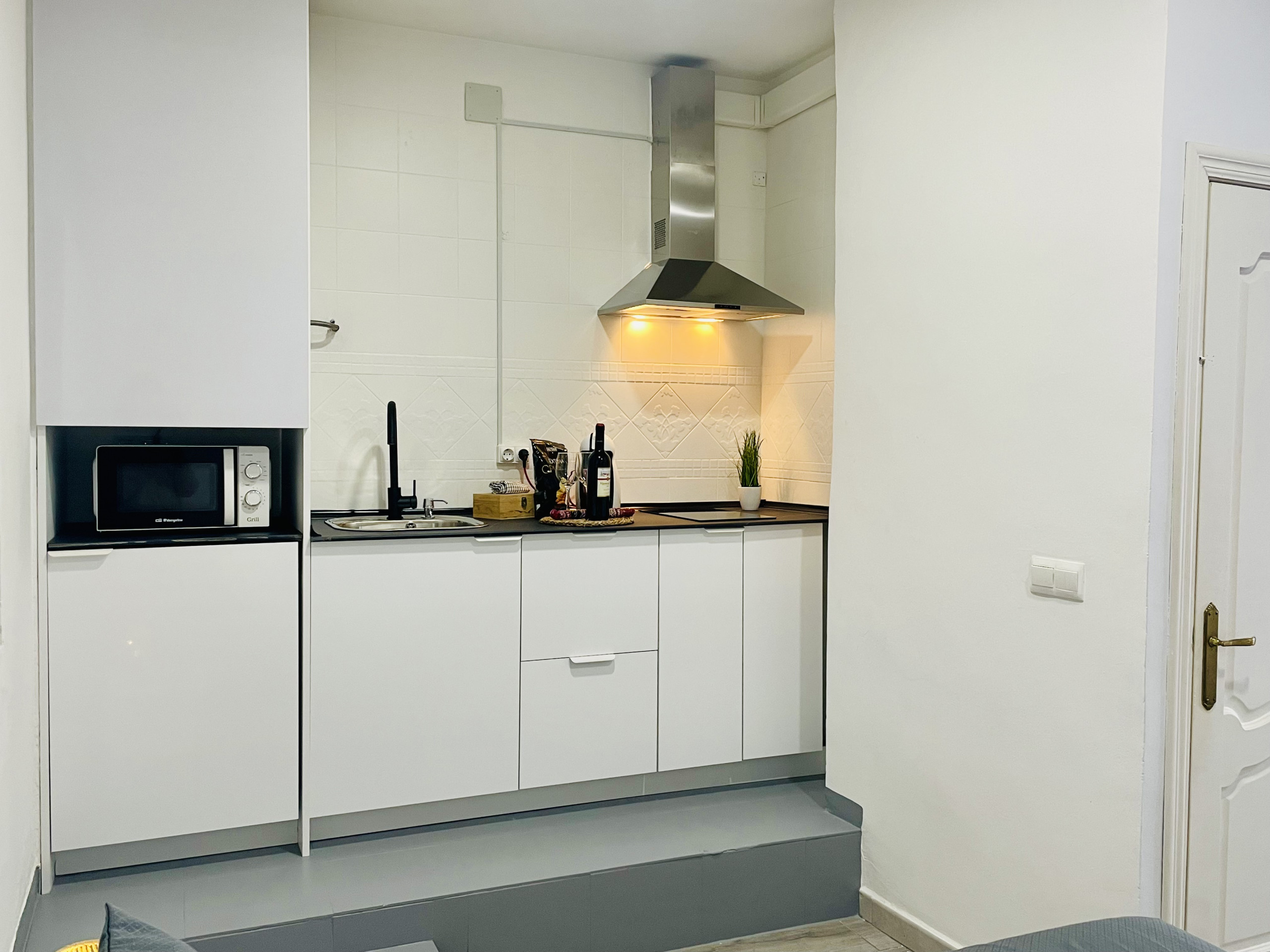 En la pequeña pero funcional cocina, dispondrás de una nevera para almacenar tus alimentos y una práctica cafetera para disfrutar de un delicioso café por la mañana o por la tarde. Siéntete como en casa con el wifi disponible en todo el estudio y mantén el ambiente perfecto gracias al aire acondicionado.