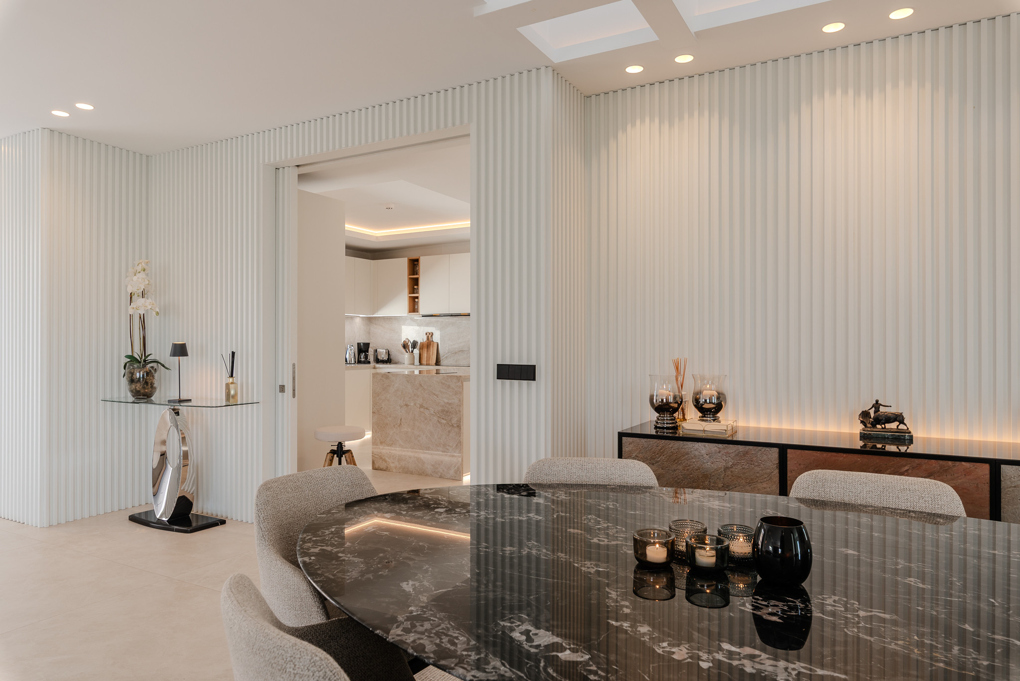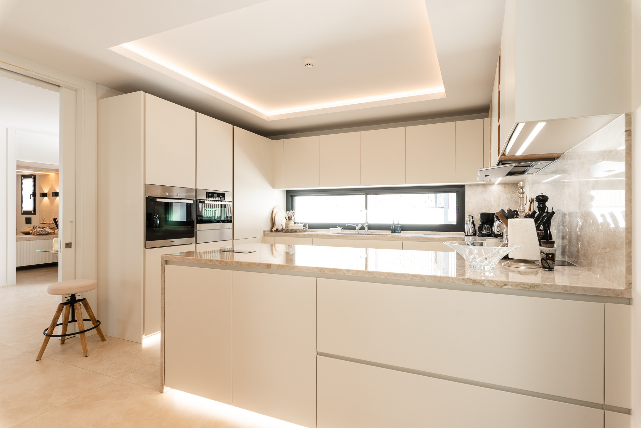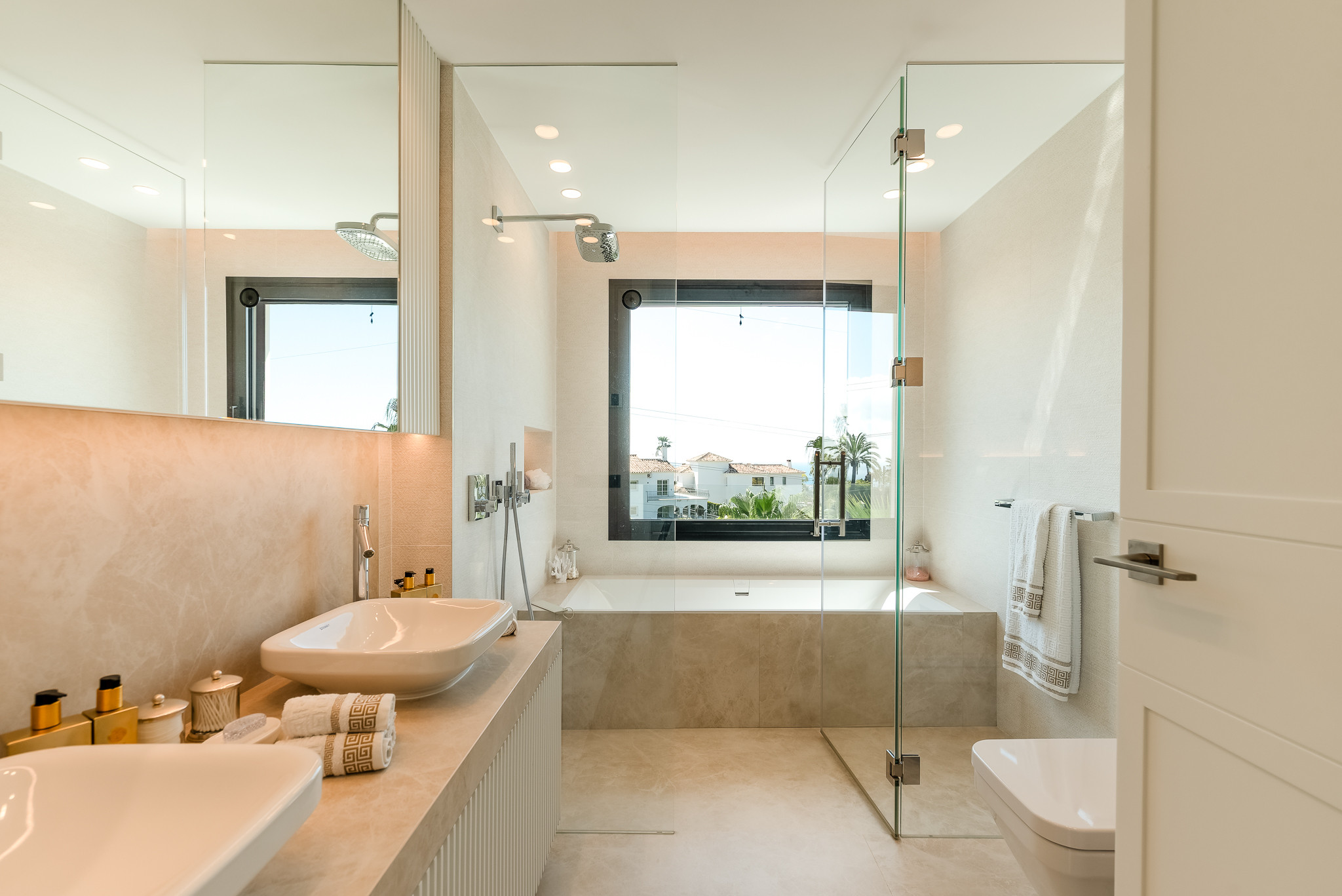 Desde el primer momento en que entras en Villa Riva, te envuelve una sensación de lujo y confort. Dispone de suelo radiante para los meses más fríos y aire acondicionado en todas las habitaciones. El salón y la cocina comparten un espacio diáfano con grandes ventanales y puertas correderas que permiten la entrada de abundante luz natural.