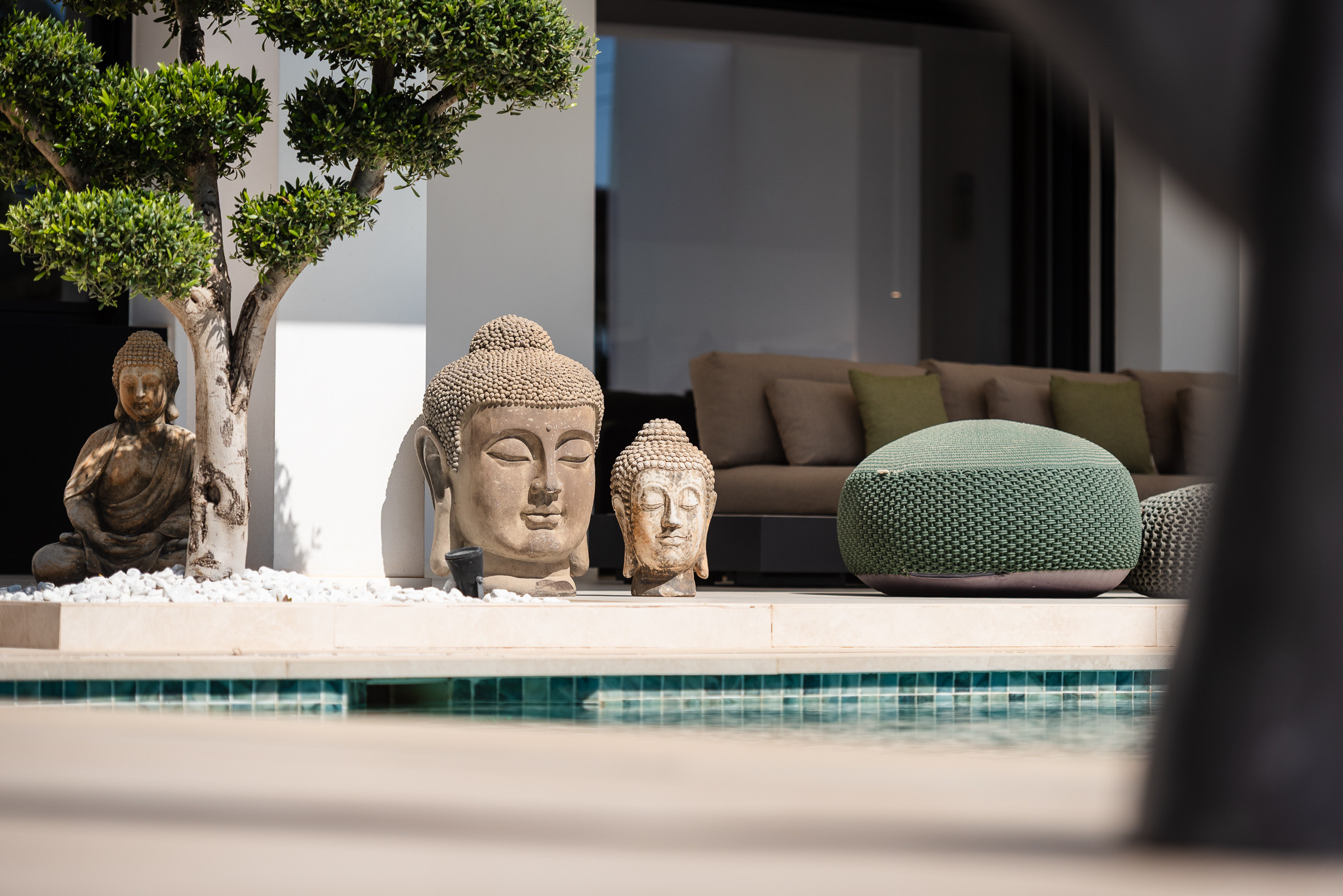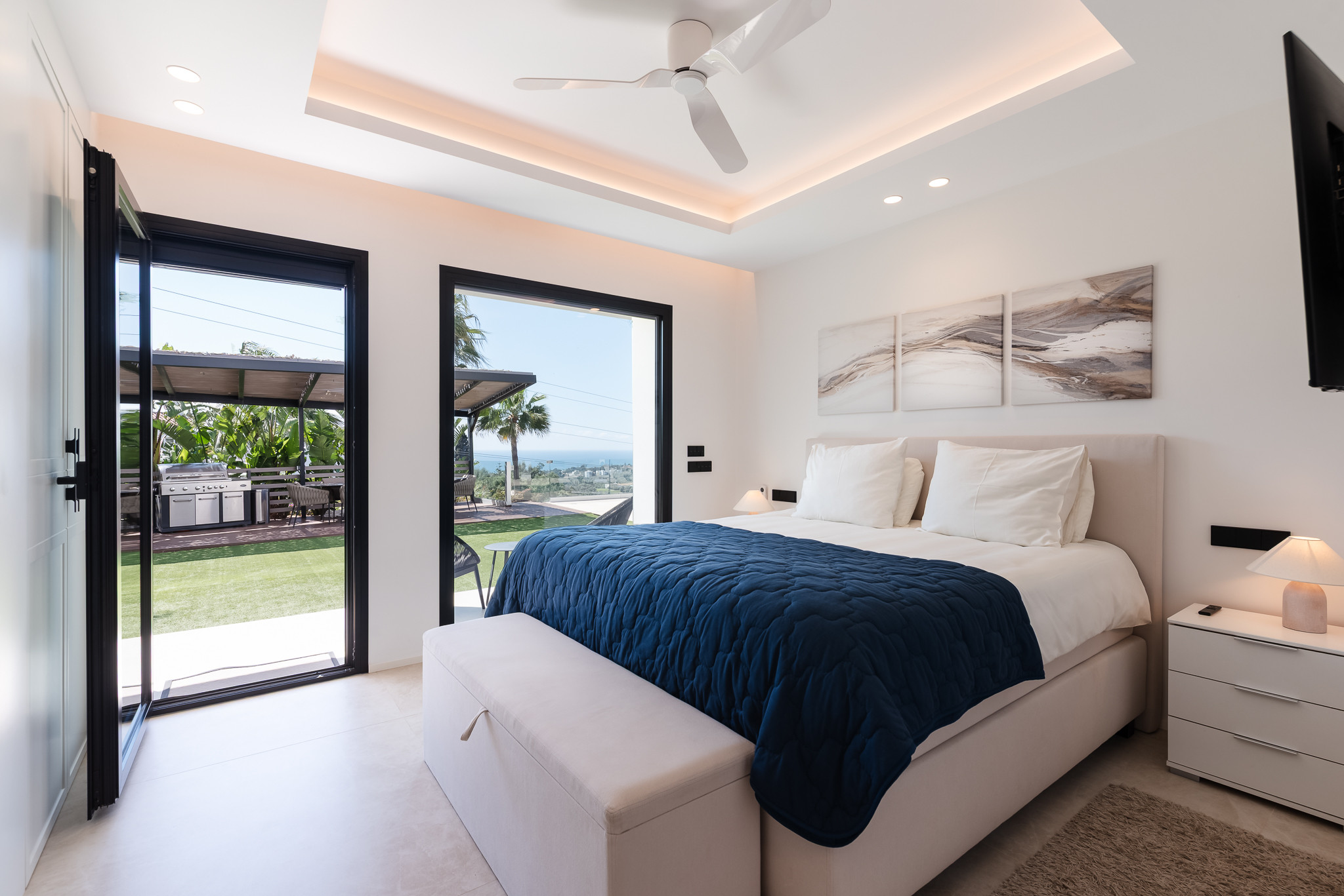 El salón y los cuatro dormitorios tienen televisión con canales internacionales y conexión Wi-Fi. Villa Riva cuenta con aproximadamente 100 m² de terrazas exteriores, una zona de barbacoa con múltiples rincones acogedores y una gran mesa de comedor exterior con capacidad para 12 personas.