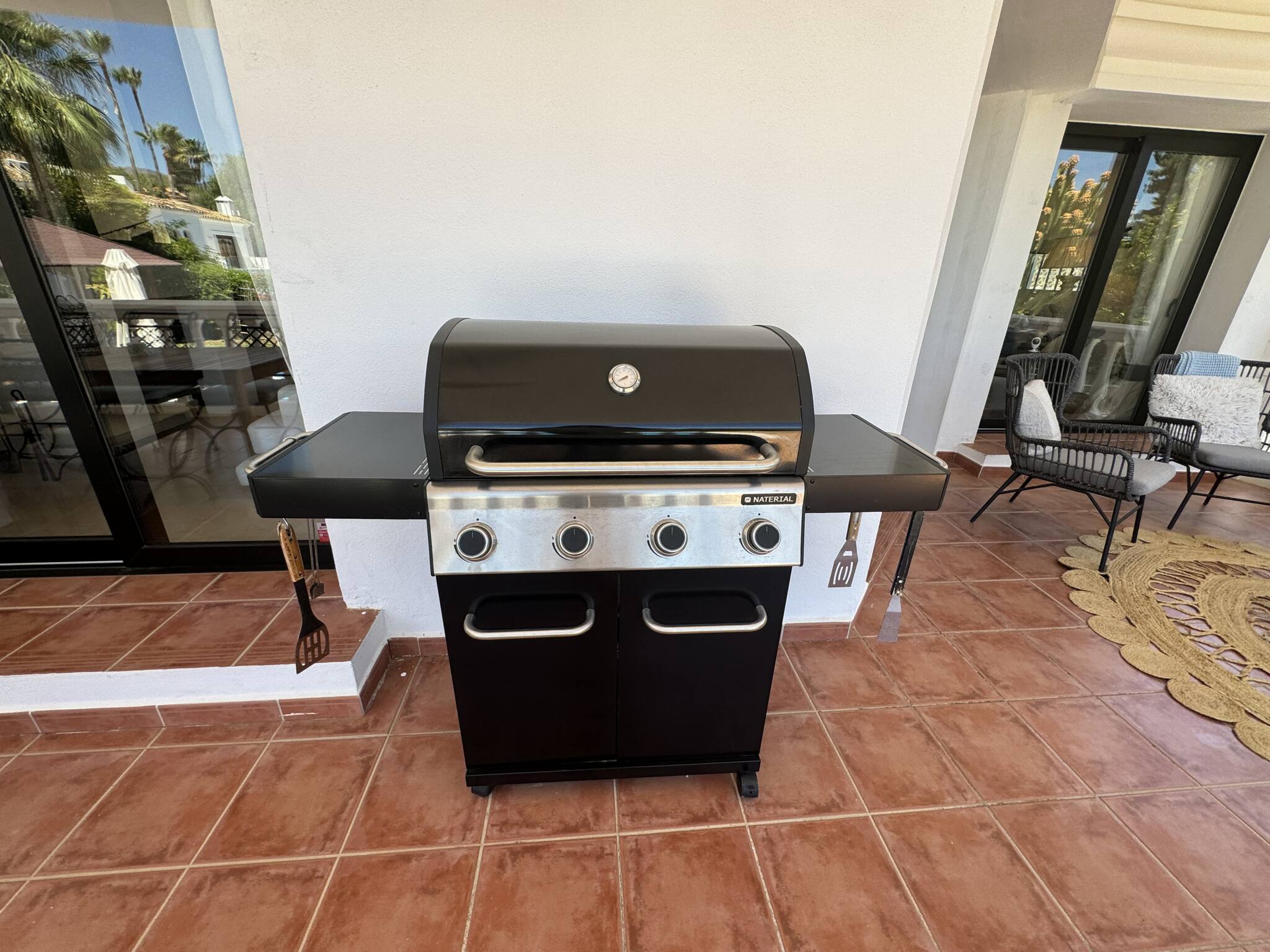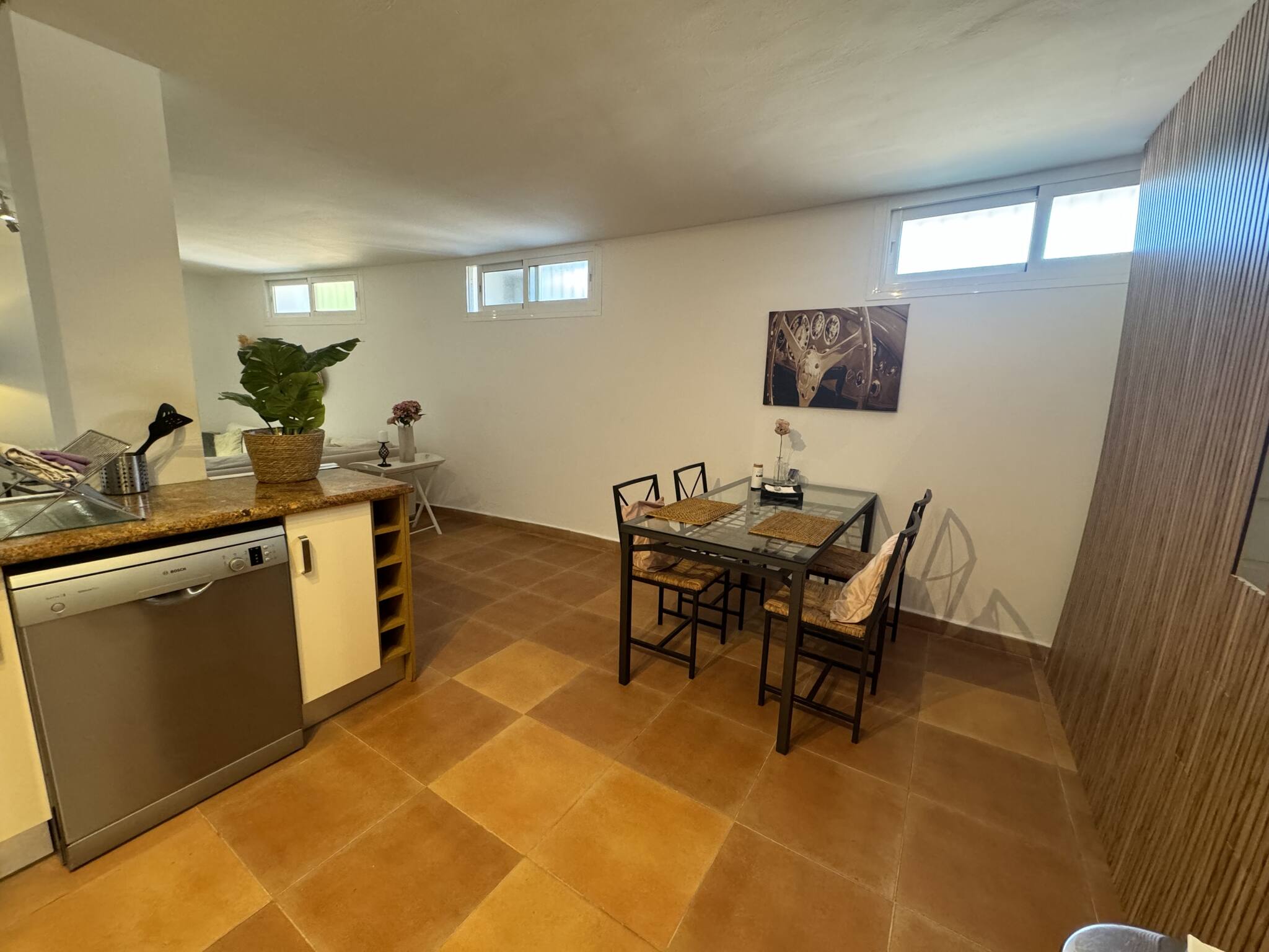 Desde la cocina hay acceso directo tanto a la terraza hacia el norte como a la terraza parcialmente cubierta hacia el sur. La terraza hacia el sur tiene un grupo de sofás complementado con hermosas vistas al Mediterráneo. La terraza, el jardín y el área de la piscina cuentan con una mesa de comedor, una gran barbacoa de gas. El bien cuidado jardín está orientado directamente al sur y, en consecuencia, tiene sol durante todo el día.