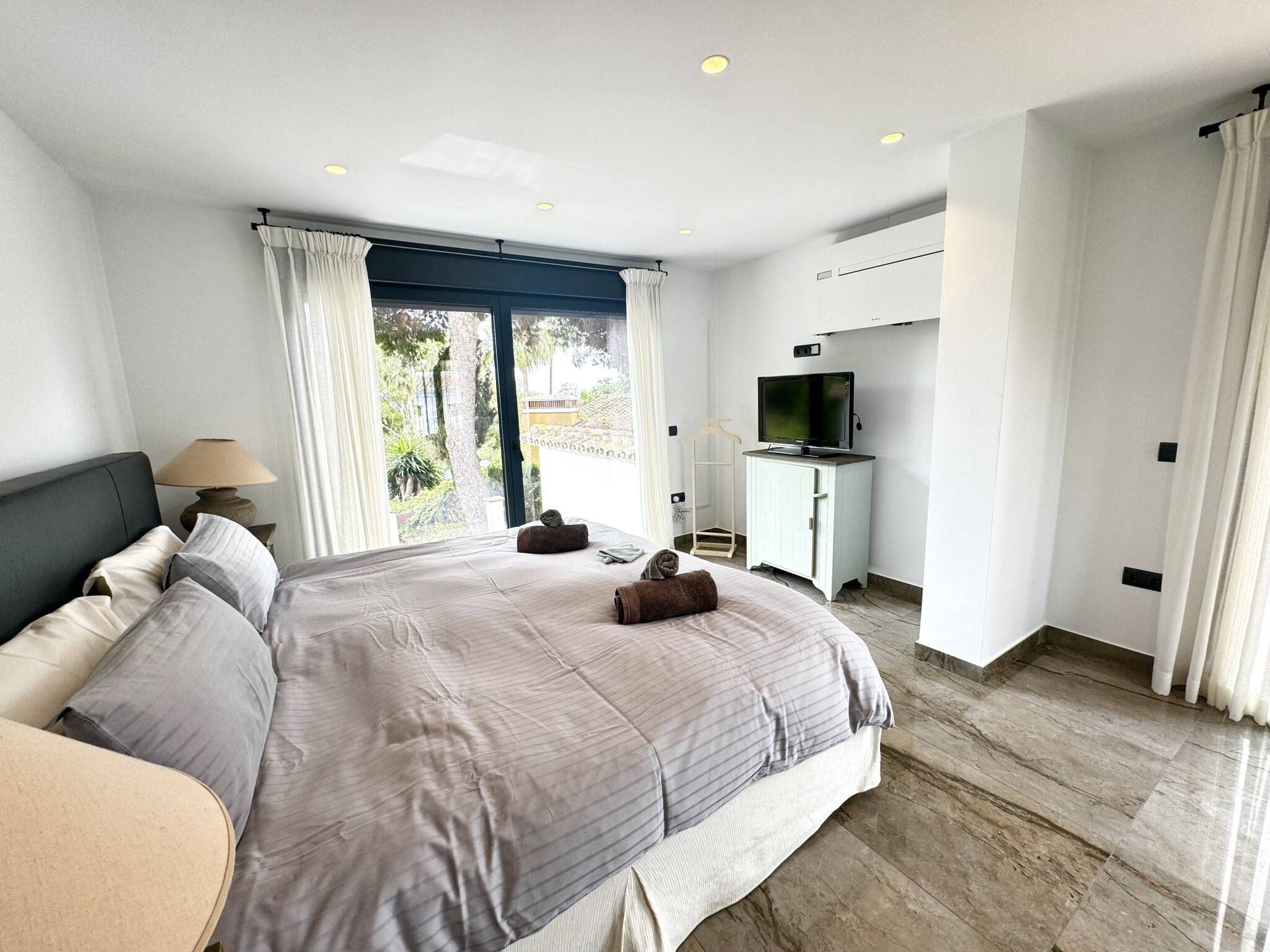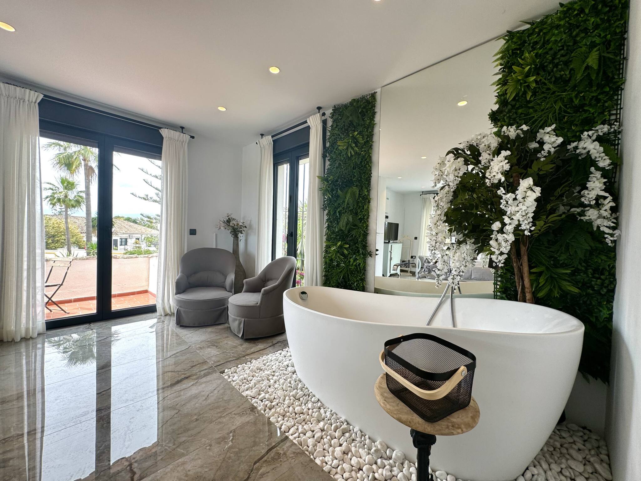 La villa se encuentra a solo unos minutos de Marbella Golf y Río Real Golf, por lo que es la opción perfecta para los amantes del golf. Además, está a solo 4 minutos en coche de la playa.