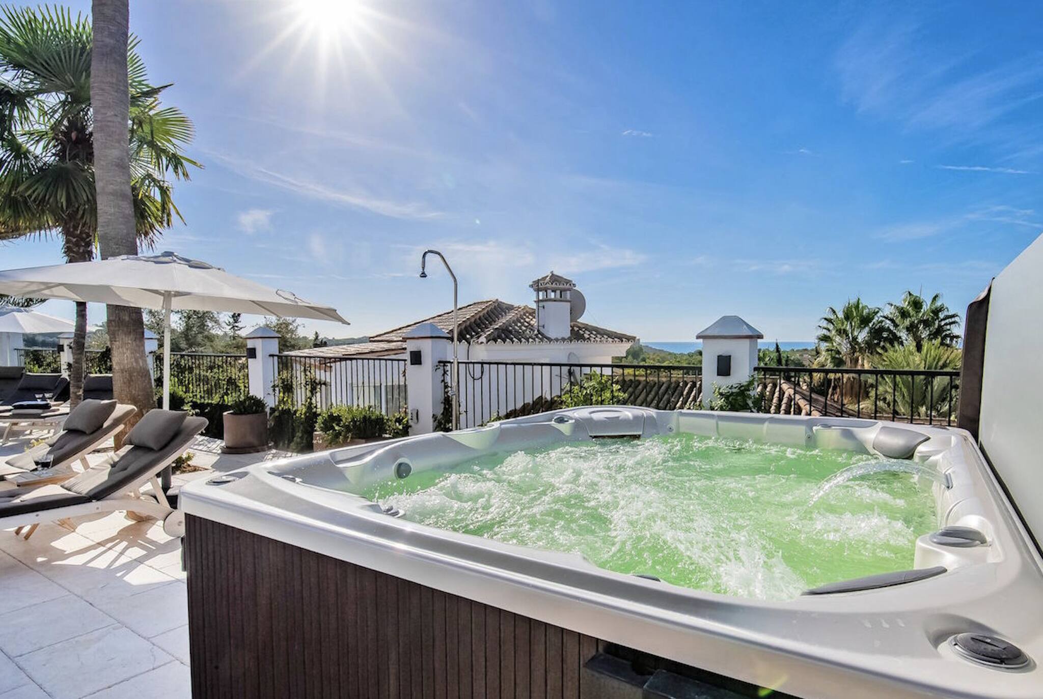 Una maravillosa villa de estilo andaluz con fantásticas instalaciones al aire libre como una piscina privada climatizada y un jacuzzi a poca distancia de una hermosa playa. La villa es para 12 personas.