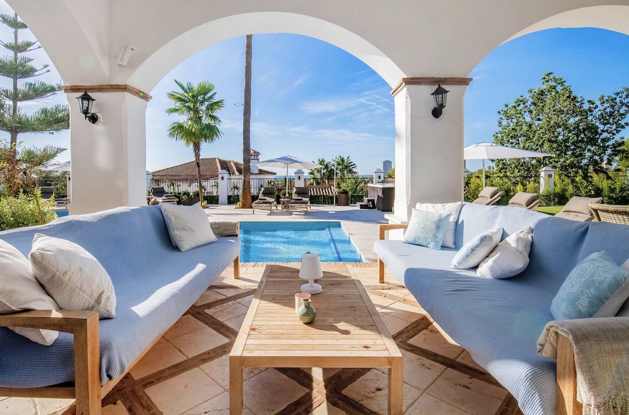 Frontline Beach Costabella es una preciosa villa contemporánea de 6 dormitorios y 4 baños ubicada directamente en la playa de Costabella, en Marbella Este, a solo 10 minutos en coche del centro de Marbella y de Puerto Banús.