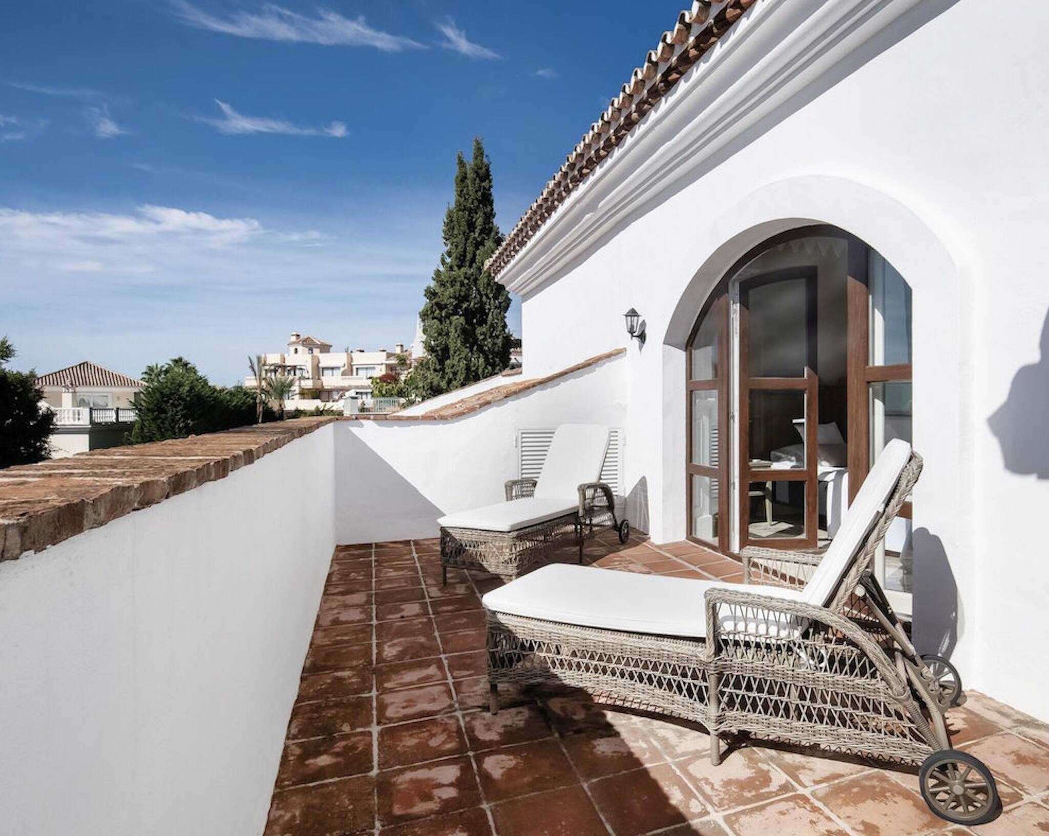 También es ideal para vacaciones de golf, ya que hay muchos campos de golf cercanos: Marbella Golf Club, Santa Clara, Río Real y Santa María Golf Club están todos entre 3 y 5 kilómetros. El exclusivo Vincci Hotel and Spa está a 2 minutos en coche, justo en la playa, donde puedes relajarte en el spa o disfrutar del beach club.