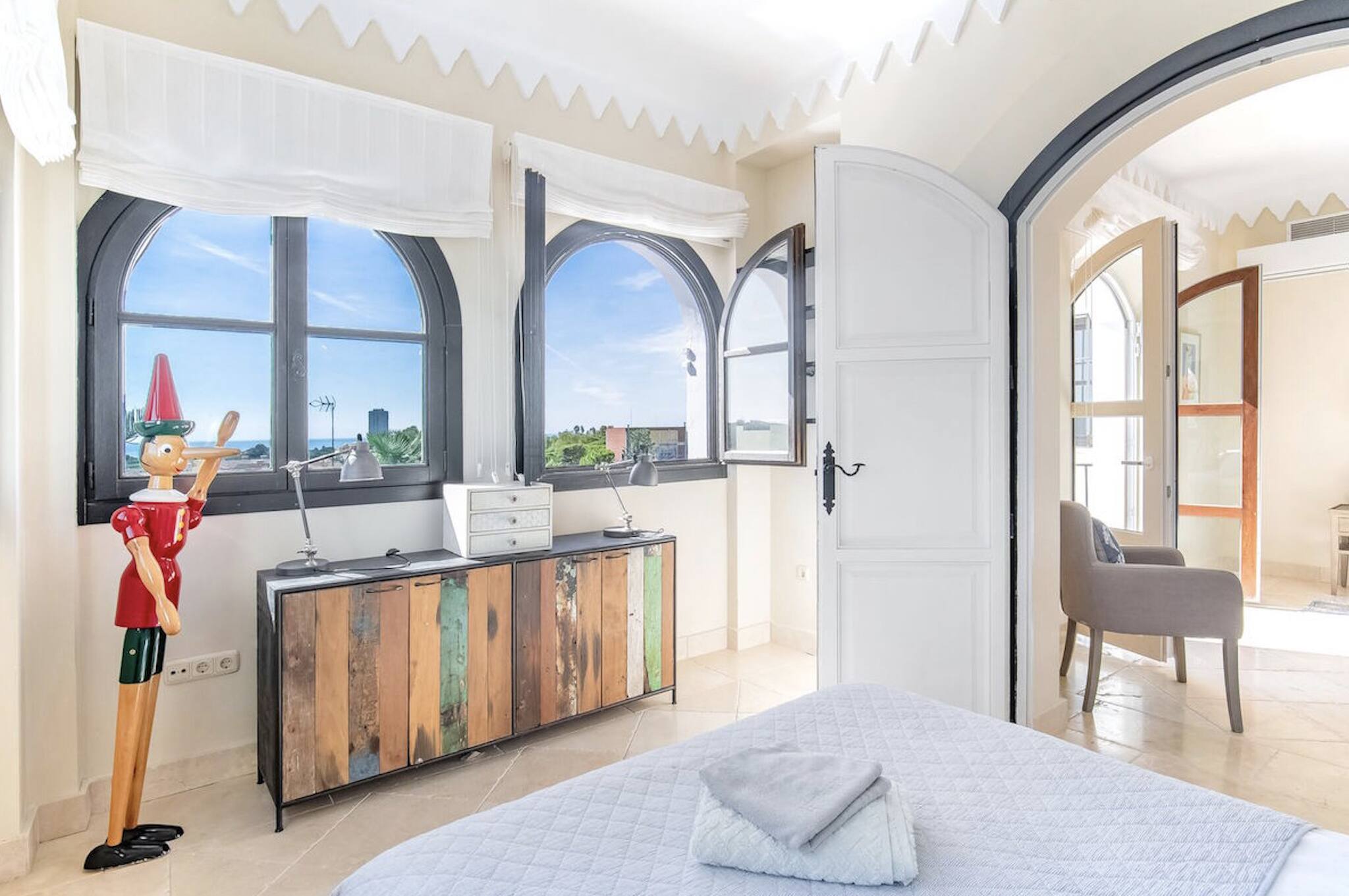 La casa dispone de dos amplios dormitorios en la planta baja y cuatro en la planta superior, todos decorados con mucho gusto y con increíbles terrazas y vistas al mar. Uno de estos es un dormitorio pequeño con cama doble, ideal para niños pequeños que quieren estar cerca de sus padres. Uno de los baños tiene bañera y ducha, y los otros tres disponen de ducha.