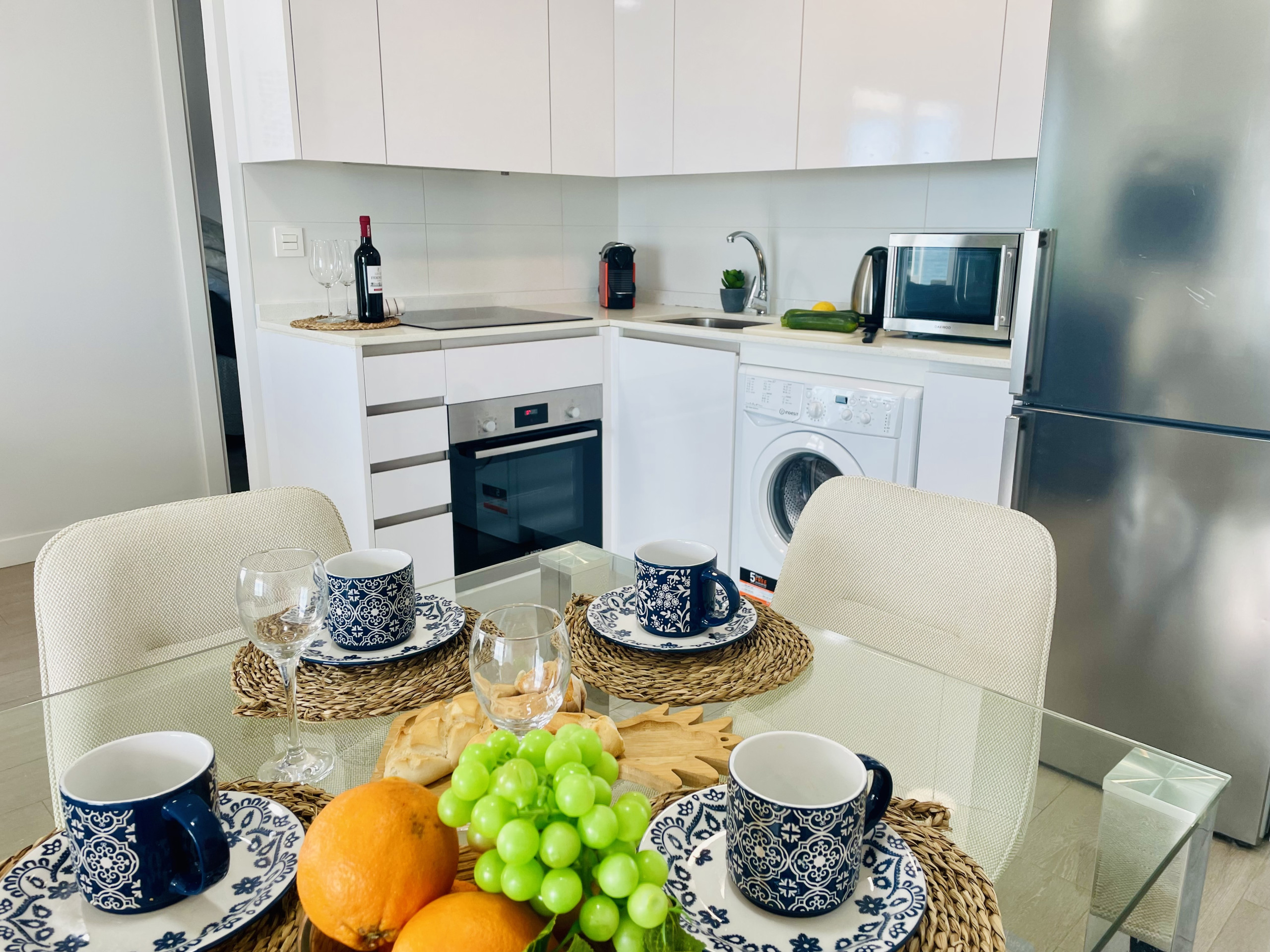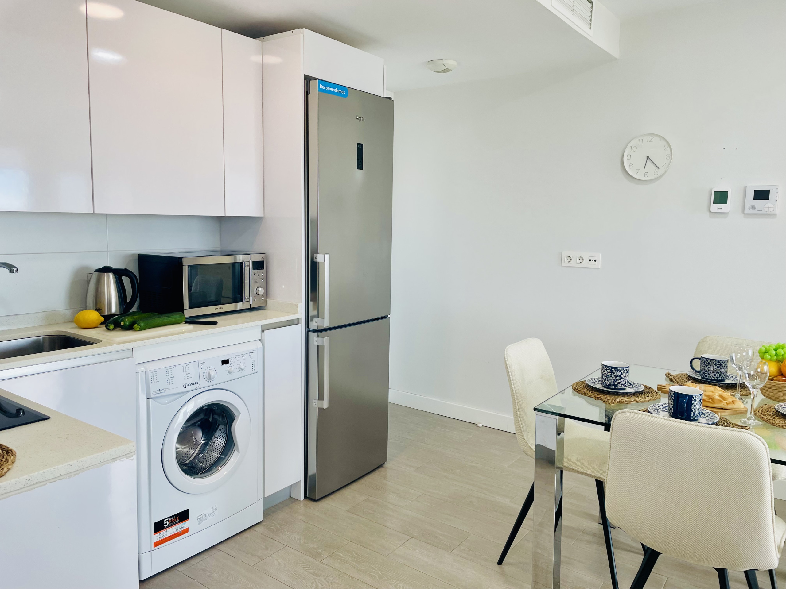 This charming apartment in Torrox Costa, located in the picturesque Faro area, is just a 4-minute walk to the beach, close to the promenade, and nearby supermarkets. The accommodation offers a unique holiday experience, featuring a spacious and bright living-dining room with panoramic views of the sea and lush communal gardens.