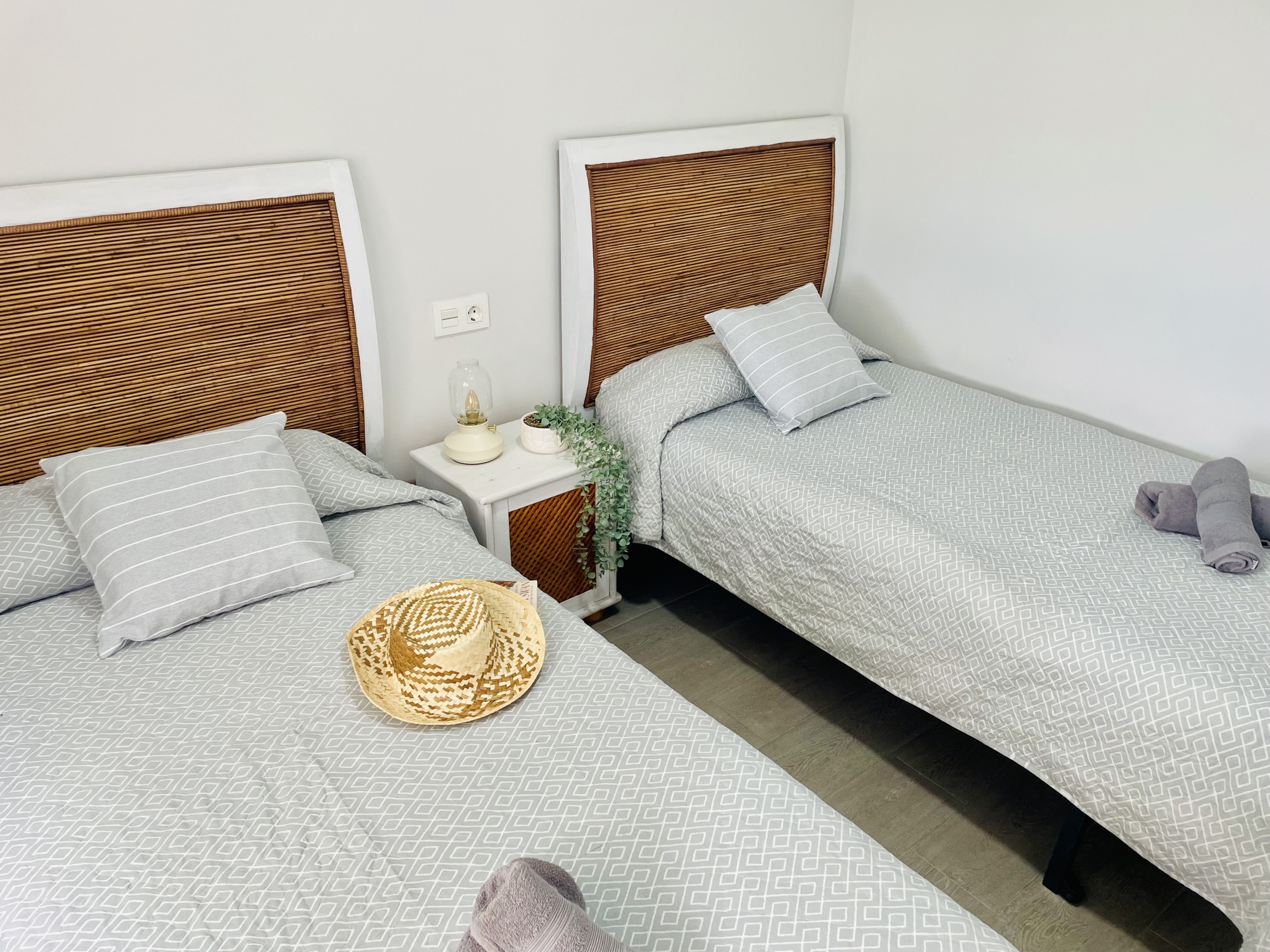 This exclusive penthouse features two elegantly appointed bedrooms. The master suite is a spectacular haven, adorned with a king-size bed measuring 2 meters. The second bedroom offers two single beds of 90 meters, both equipped with built-in wardrobes, ensuring organized and functional spaces.