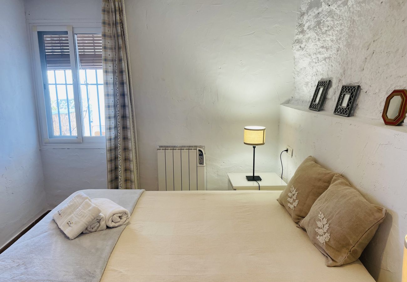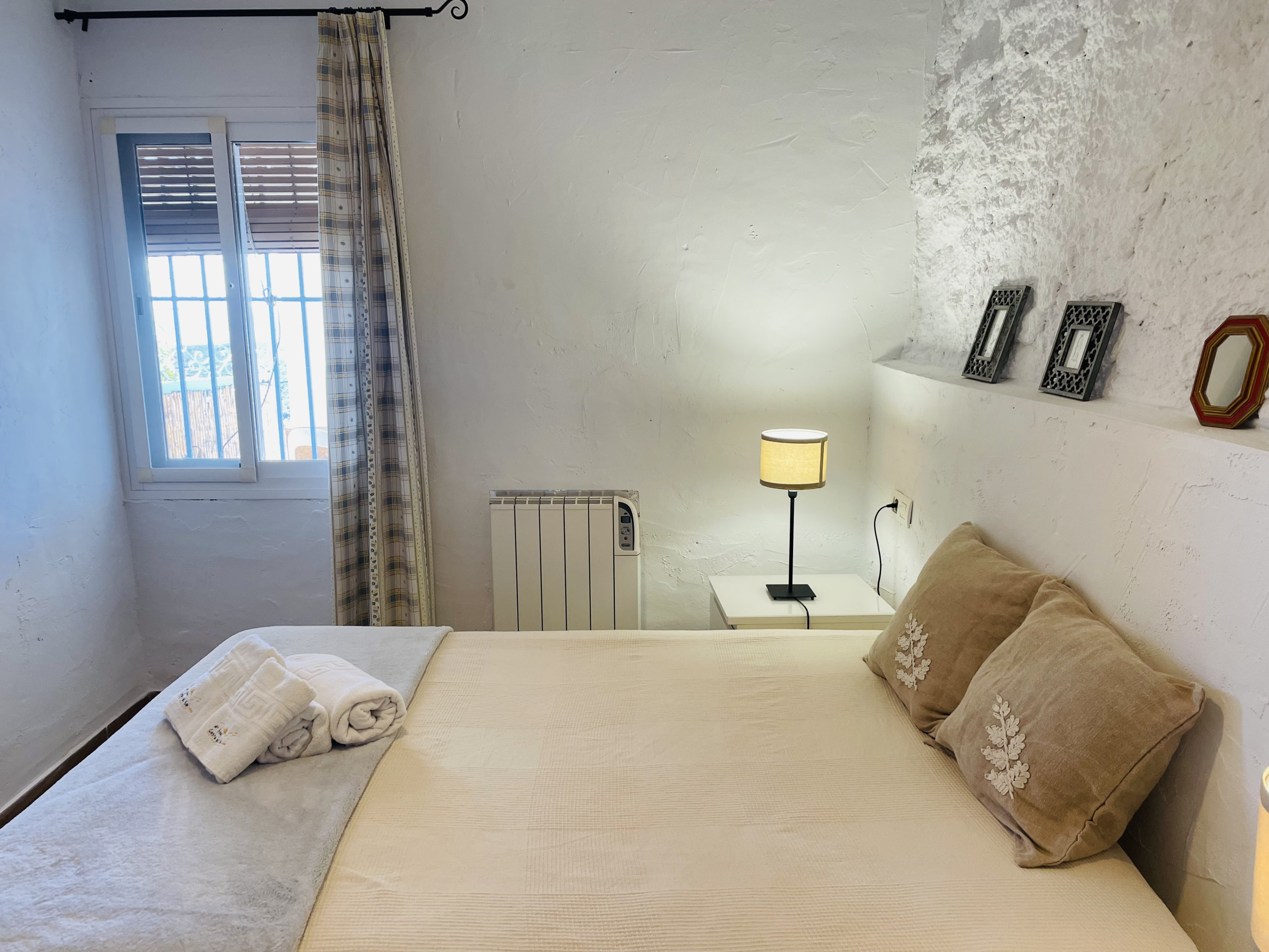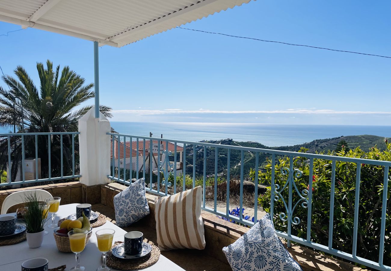 This modernly decorated cortijo features three bedrooms: two with double beds and one with a single 90 cm bed. The cozy living room with a fireplace and TV is perfect for relaxing, while outside, a spacious porch with a BBQ provides the ideal setting for outdoor dining with breathtaking sea views.